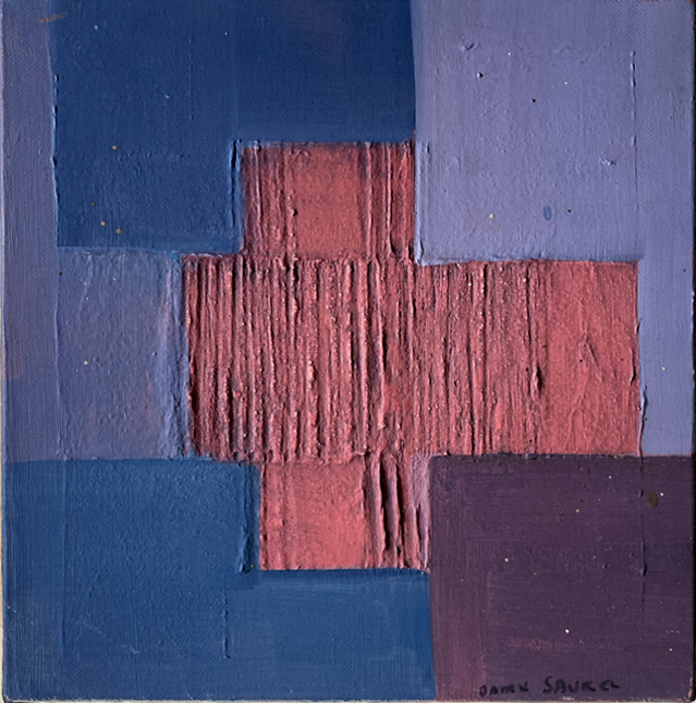 Ces affinités avec Poliakoff et de Stael ne sont évidemment pas un hasard. On peut déceler un parallèle entre le destin de Poliakoff et celui de Jame Saurel : Poliakoff a fui sa patrie, caché sous un train et n’a jamais revu sa famille ; Jame Saurel a lui aussi été contraint de partir. Quant à Nicolas De Staël, c’est la vie qu’il choisit de quitter en pleine apogée, vers une autre lumière ; cette lumière qui est une révélation pour tant d’artistes, dont Soulages, le « peintre du noir » qui se baptise « peintre de la lumière ». Toutefois, la spécificité de Saurel, ne réside pas tant dans le traitement de la lumière mais dans sa constance et son choix raisonné de l’abstraction. La plupart des artistes partent de la figuration pour aboutir à l’abstraction (ou vice versa) avec une évolution de l’expression plastique qui peut partir du mimétisme pour atteindre leur « style », une fois les influences « digérées », donc assumées. .Jame Saurel qui doute de tant de choses, a enfanté naturellement des carrés et des lignes qui constituent son univers, avec une famille de formes bien à lui (souvent ses carrés sont empreints de distorsions), constellé de quelques figures fugaces. Son choix rectiligne émane d’une mystérieuse certitude connue de lui seul, l’abstraction est sa demeure à vie, et exprime sa « terra incognita » mieux que toute représentation du réel qui lui est étymo- logiquement insupportable ; car, pour Jame Saurel, supporter, c’est porter dans ou « sur » l’univers spirituel le poids de la vie, pour la rendre plus légère, plus joyeuse.