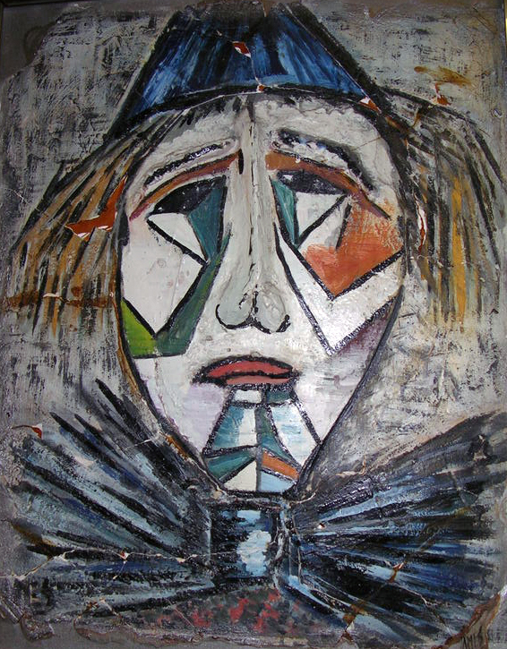 Huile sur autoportrait réalisé en platre collé sur isorel et peint à l'huile