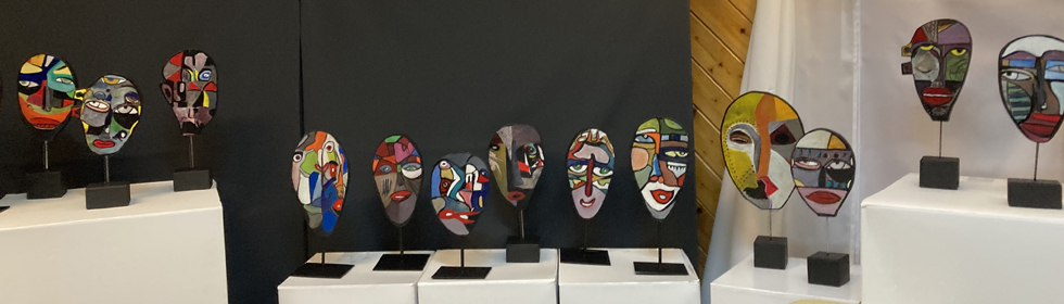 Les masques témoignent du vécu de cette période COVID19. Les œuvres sont réalisées sur ordinateur puis imprimées en couleur. L’image est ensuite marouflée et/ou transposées sur des supports en bois. Le dessin est repris à l’acrylique puis protégé. Ils sont signés.